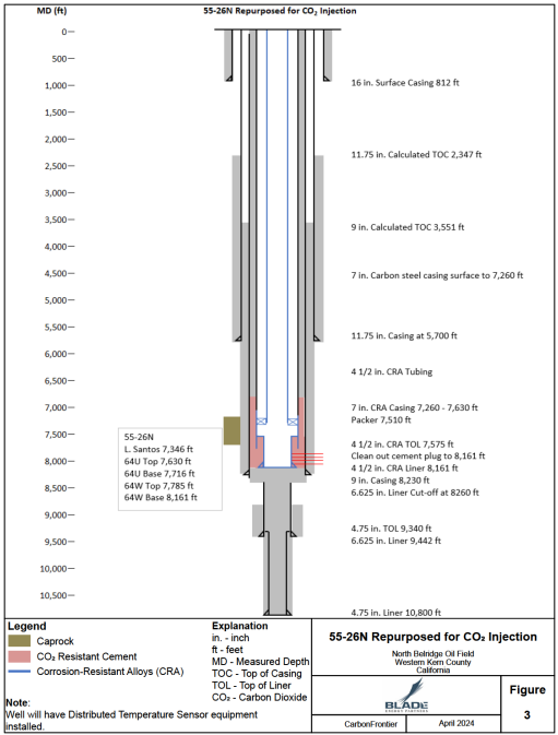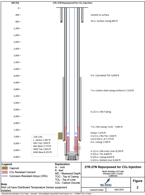 The CarbonFrontier CCS Project is a large-scale carbon capture and storage development in Kern County, California, led by Aera Energy in partnership with California Resources Corporation (CRC). The project is designed to permanently store up to 40 million metric tons of CO₂ in the 64 Zone saline reservoir beneath the North Belridge oilfield. Plans call for the construction of up to nine Class VI injection wells, along with monitoring wells and approximately 14 miles of new CO₂ pipeline infrastructure. CO₂ will be captured from existing produced gas streams and stationary post-combustion sources within the Belridge Field before being injected into deep saline formations. The project covers more than 13,000 acres and is envisioned as the anchor for a regional “carbon park,” providing decarbonization pathways for industrial emitters in California’s Central Valley. Environmental reviews are ongoing under California’s CEQA process, with Class VI permitting applications filed to the EPA.