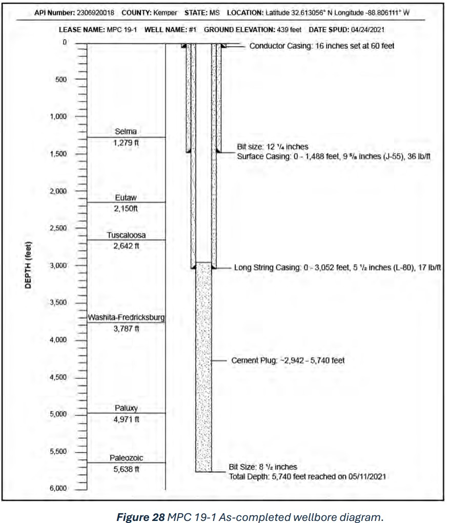 The Kemper County Storage Complex, led by Mississippi Power Company (a subsidiary of Southern Company), was proposed as a large-scale CO₂ storage project in Kemper County, Mississippi, adjacent to Plant Ratcliffe. The project planned to capture post-combustion CO₂ from the natural gas-fired unit at Plant Ratcliffe and inject it into the Lower Cretaceous Paluxy Formation, a thick sandstone reservoir located more than 5,000 feet deep. Two injection wells—MPC 19-2 and MPC 32-1—were proposed, with long-term plans to store over 50 million metric tons of CO₂ across a 30-year injection period. Six prior characterization wells (drilled between 2017 and 2021) provided detailed geologic, core, and fluid data that confirmed the suitability of the Paluxy reservoir and the sealing capacity of the overlying Tuscaloosa Marine Shale and other confining units. The project was developed under the DOE CarbonSAFE program, managed by the Southern States Energy Board (SSEB) and Advanced Resources International (ARI), with Mississippi Power serving as site host and operator. It was intended to be a regional storage hub supporting Southern Company’s carbon reduction goals and could have provided storage options for other power plants and industrial facilities in the Southeast. Operational plans anticipated injection rates of roughly 0.7–0.9 million tonnes per year of captured CO₂ from Plant Ratcliffe, with a maximum permitted wellhead injection rate of ~3,973 tonnes/day per well. The project was ultimately withdrawn and did not proceed to permitting or construction.