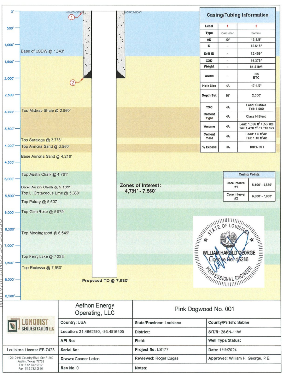 Aethon is developing a 2 well carbon storage development in Sabine & San Augustine Counties in Texas. Aethon is utilizing the Tea Olive and Pink Dogwood stratigraphic test wells to develop the carbon storage hub.